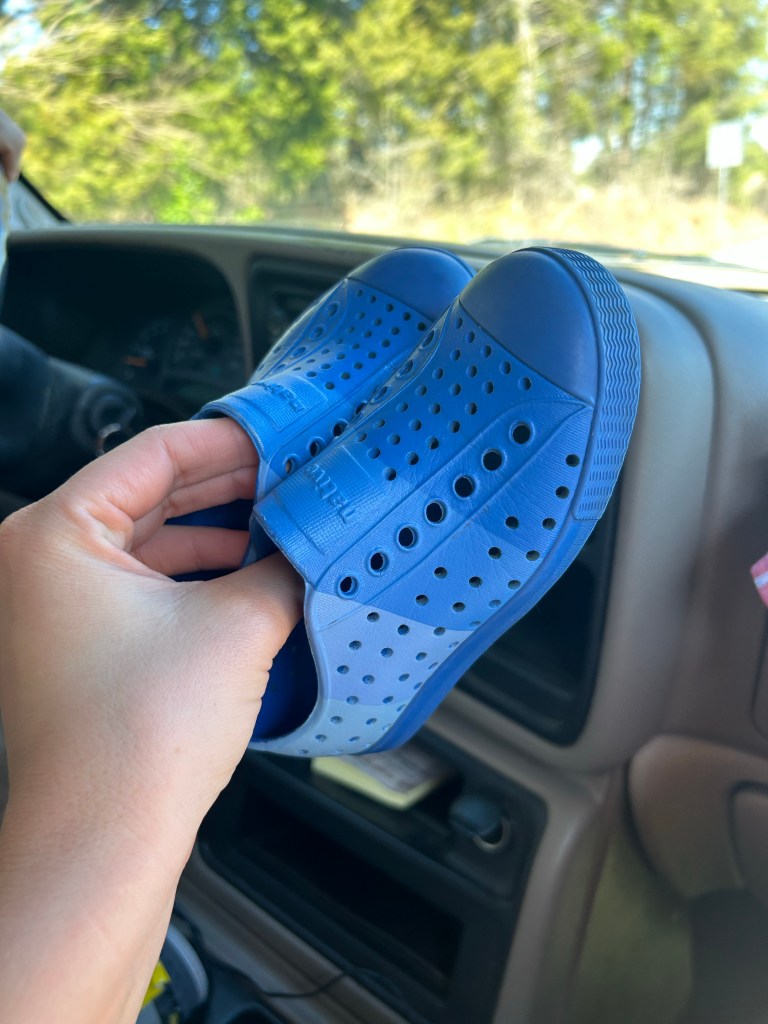 We made a stop at a coworker’s house who lives local to me! She does children’s clothing consignment and I got Brewer a few things including these cute little native shoes.