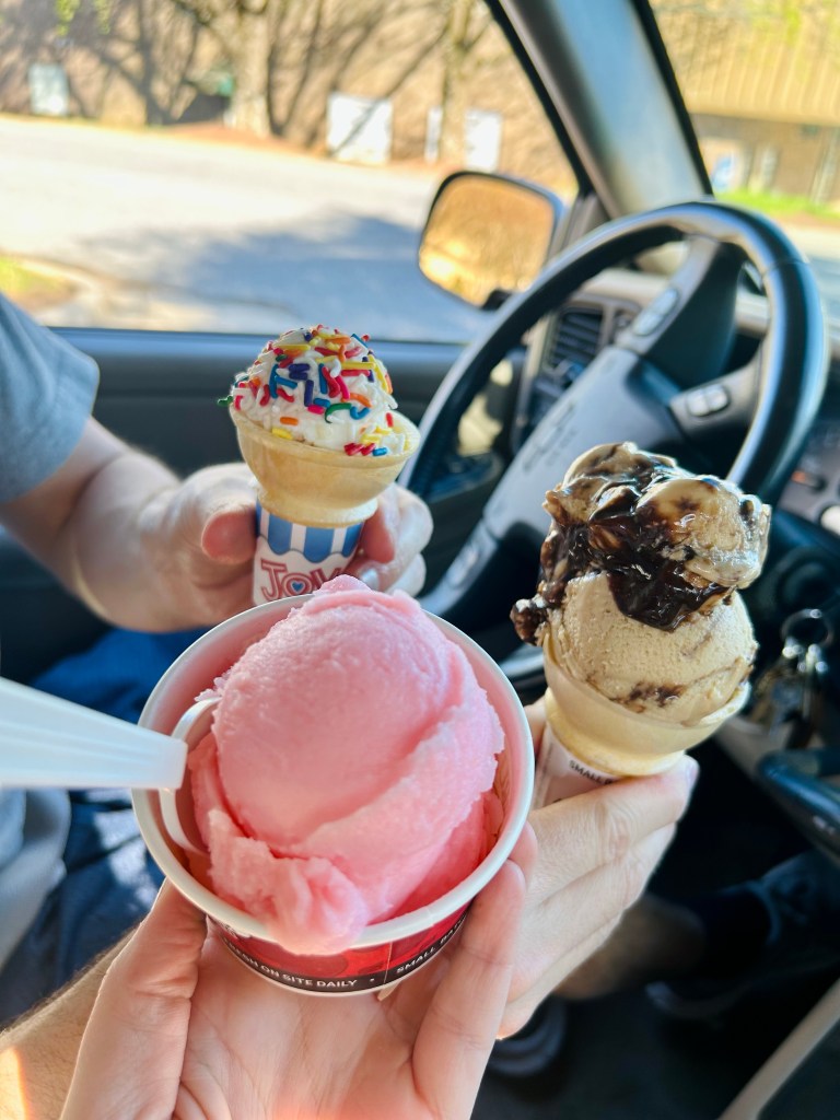 We celebrated the start to spring break with Brusters! Sorbet for me 😉 I’m not a big fan of dairy ice-cream. Never have been! Especially on a hot day, I’d rather have sorbet or an icee.