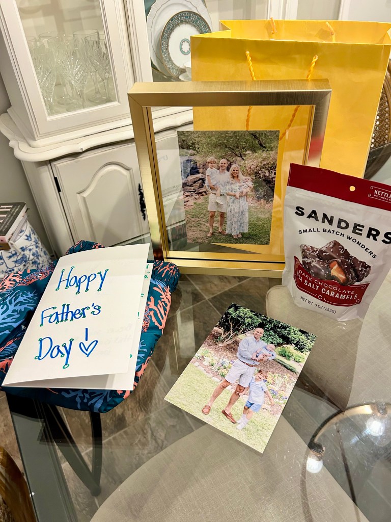 We left for the beach on Father’s Day, so we gave Harry his Father’s Day present here at home on Saturday: updated family photos for his office, swimming trunks, candy, and a homemade card! (Brewer decorated the inside!)