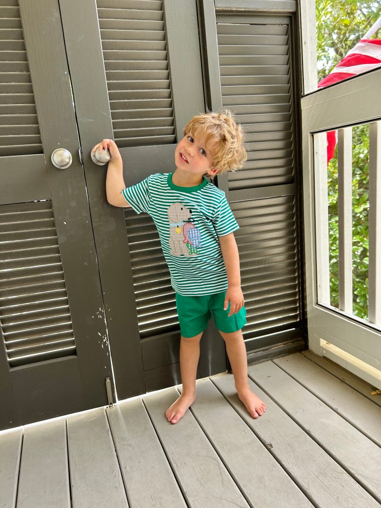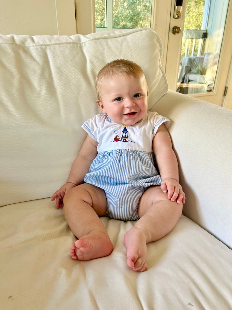 I love that all of Brewer’s clothes get passed down to Capers. I have a sweet memory of Brewer wearing this same little lighthouse outfit at the beach 🥹