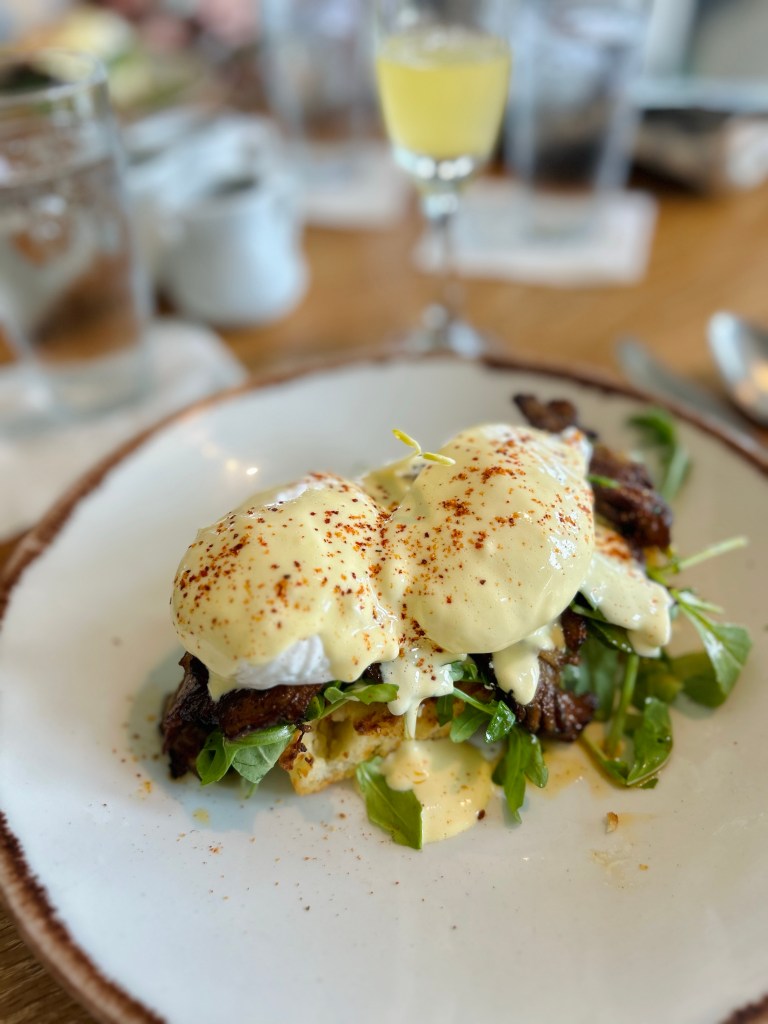 We had a brunch reservation at Pescado! It was delish! I had the brisket Benedict and we each added on a lemon blueberry pancake. Not pictured but SO YUM!