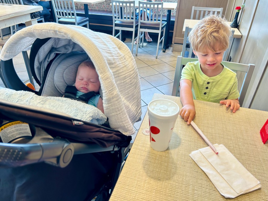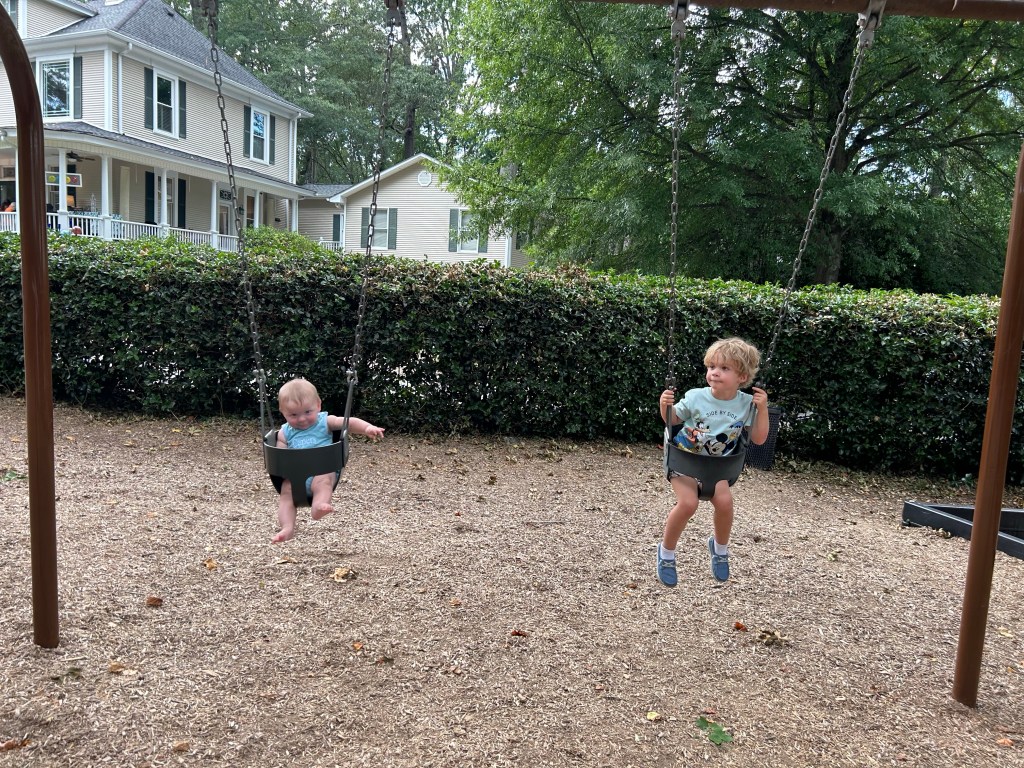 I love all of my outings with these two. This particular summer morning, we went to Chick Fil A for breakfast and then the park.
