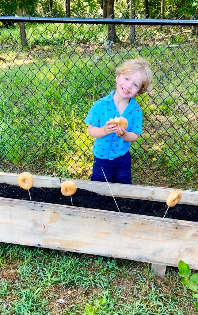 After traveling for two weeks, the tomato garden wasn’t doing very well… so… we planted “donut seeds” instead! 😉 And Brewer has talked about it ever since. ❤️