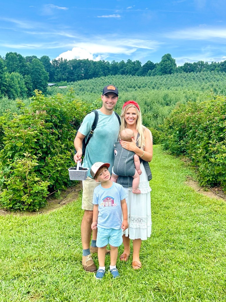 We actually planted the blueberry bushes two summers ago and we finally had some to pick this year! Brewer loves checking for berries that have turned blue.