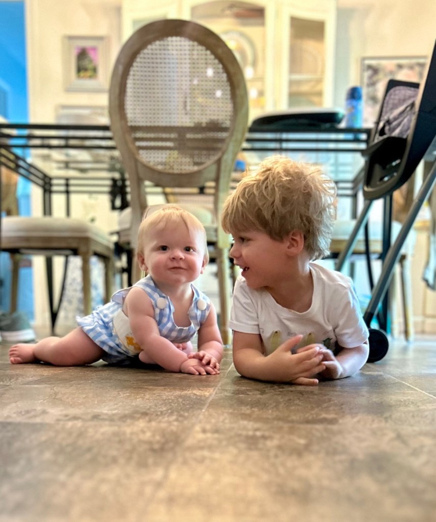 This week: I snapped this photo a few nights ago! This is life lately.. watching two sweet brothers crawl around on the kitchen floor.