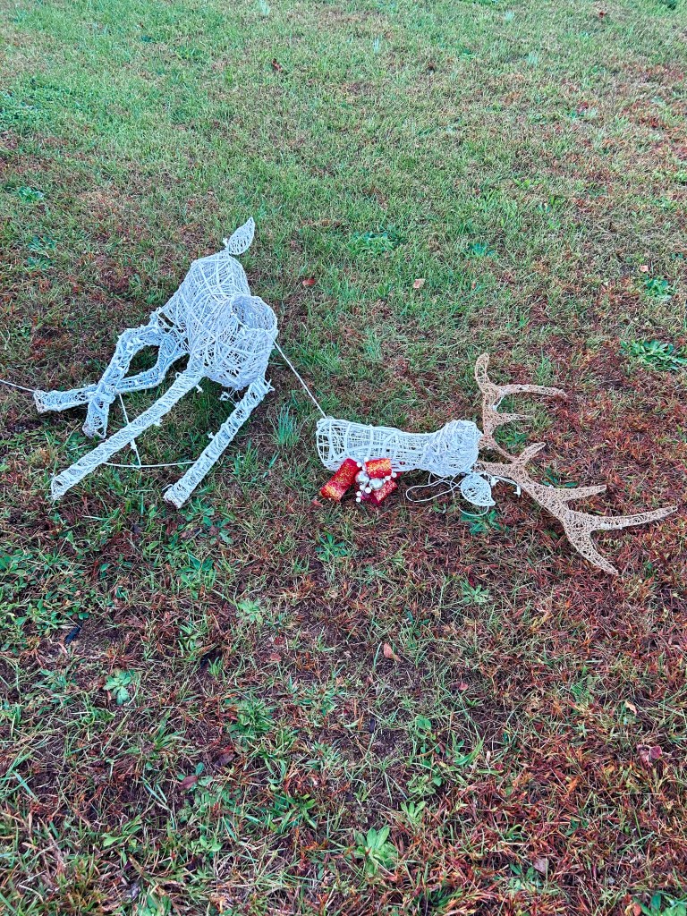 “The Christmas of the bear”… haha! We had a massive bear come through the meadow mid November. He stayed for about a week and apparently did not like our reindeer. 🫣