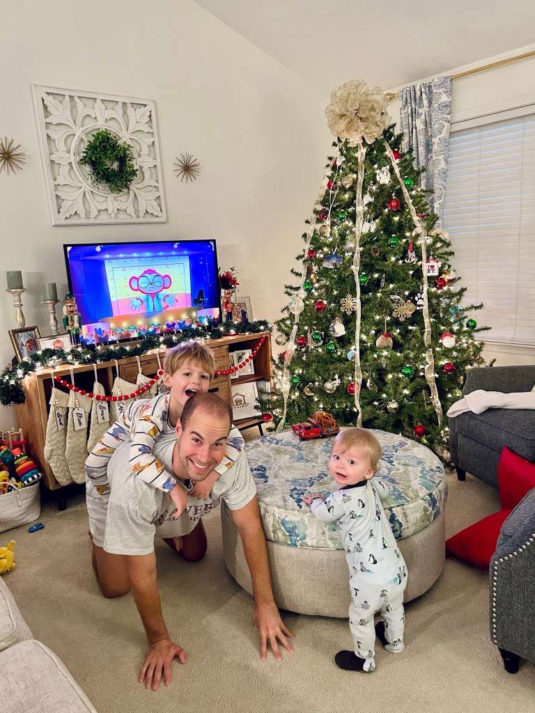 The boys being silly by the Christmas tree before church one Sunday morning!