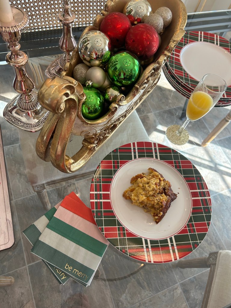 We had breakfast casserole, danish, and mimosas for breakfast!