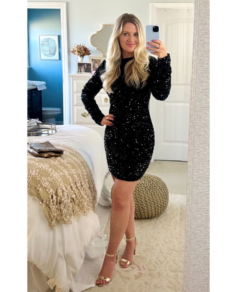 Find it, here: Long Sleeve Black Sequin Dress