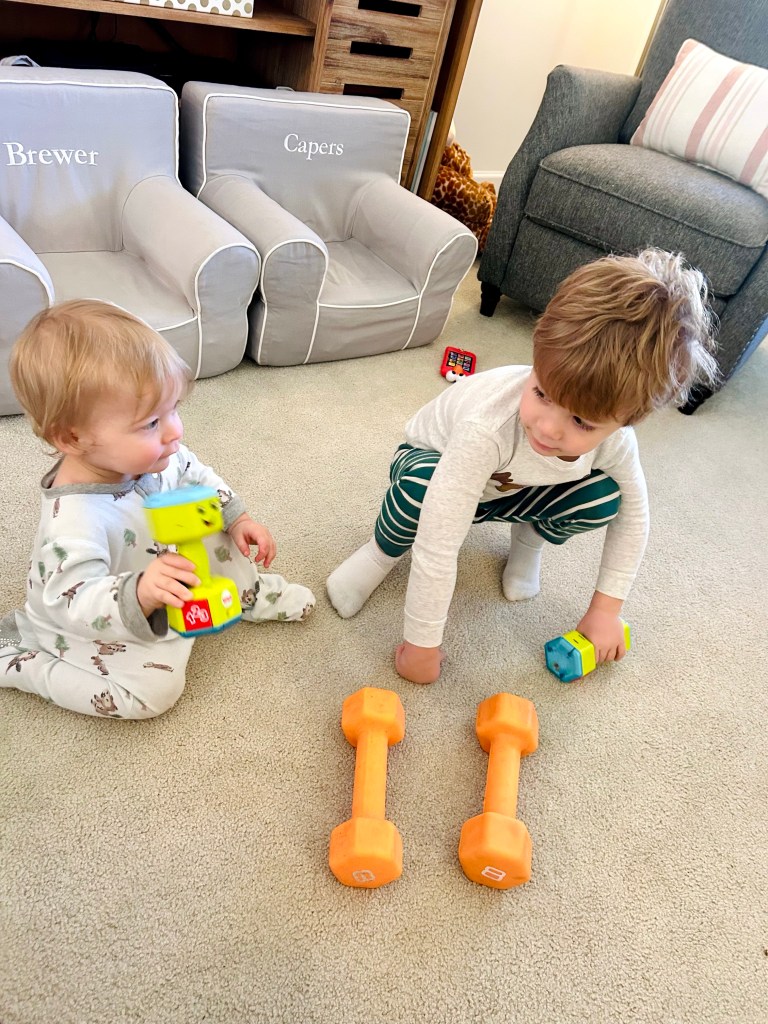 Haha, my work out buddies! I’ve been trying to stay really consistent with work outs this year. If the boys are around, they join in.
