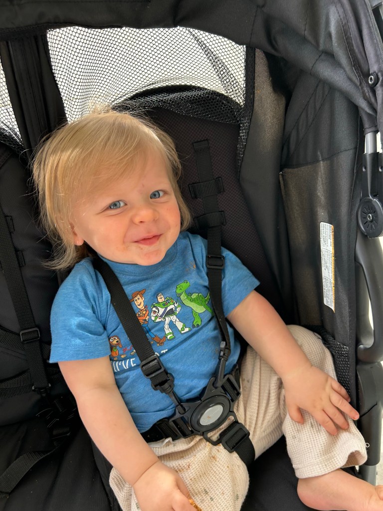 Haha, it’s the car in the belt loop for Brewer’s first practice! Lol love him!
