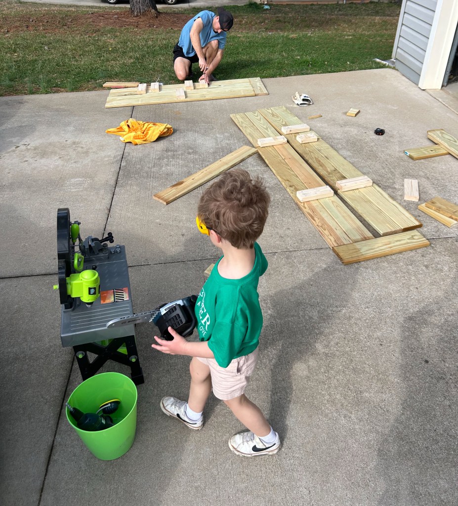 The big boys built a box for the garden earlier this spring.