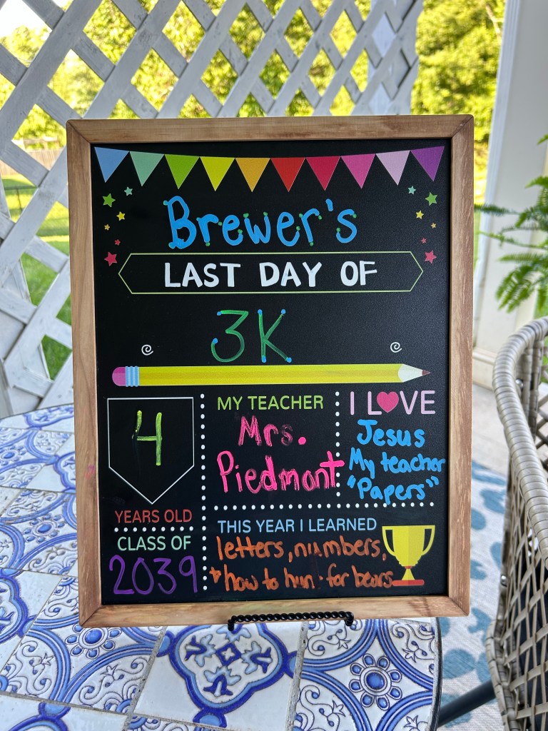 End of year school things: I love this tradition! Capers started a book this year! I start at the beginning and write each class level in order/ per page, and the teachers write a little note. I’ll give the books to the boys when they graduate someday!
