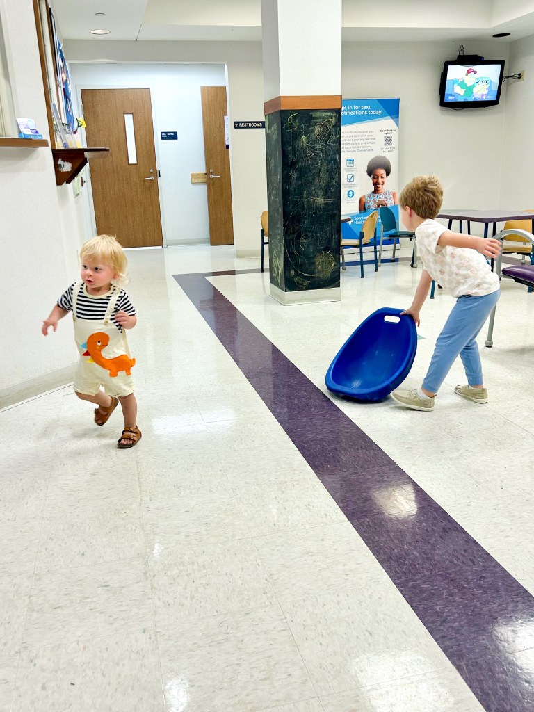 This is what it looks like taking two to the doctor these days 🤪 Capers had a follow- up visit for his ears. He’s had on and off infections since his first birthday. He’s currently in the clear but we want to make sure it stays that way!