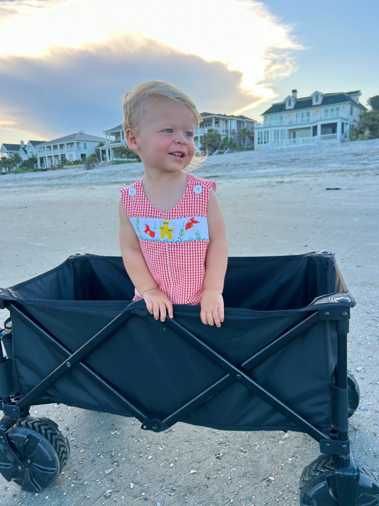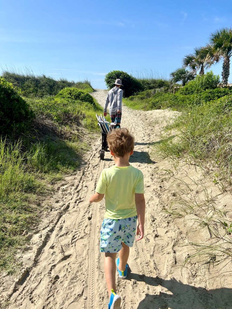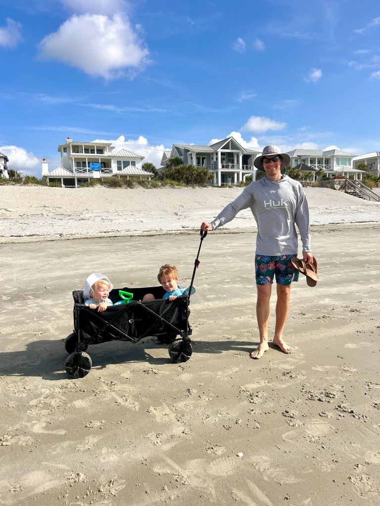 We took the boys on a wagon ride down the beach to our favorite spot to see the dolphins!