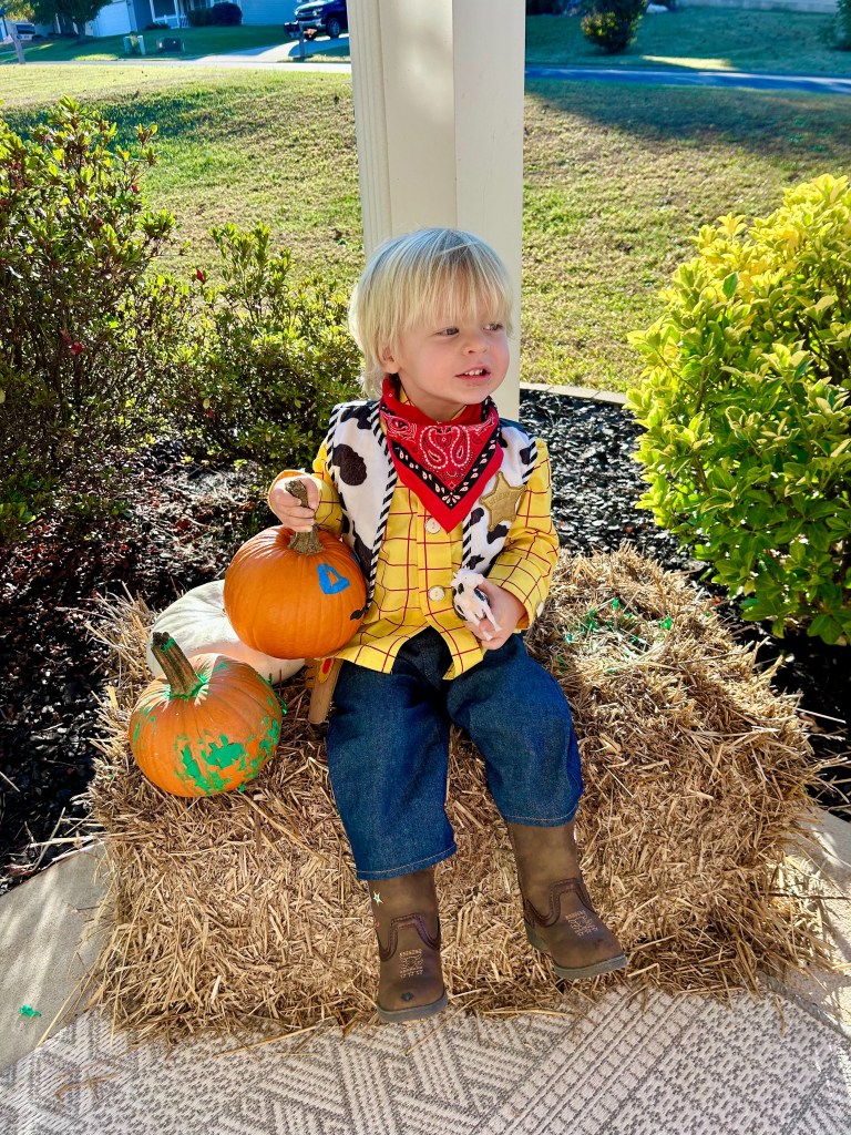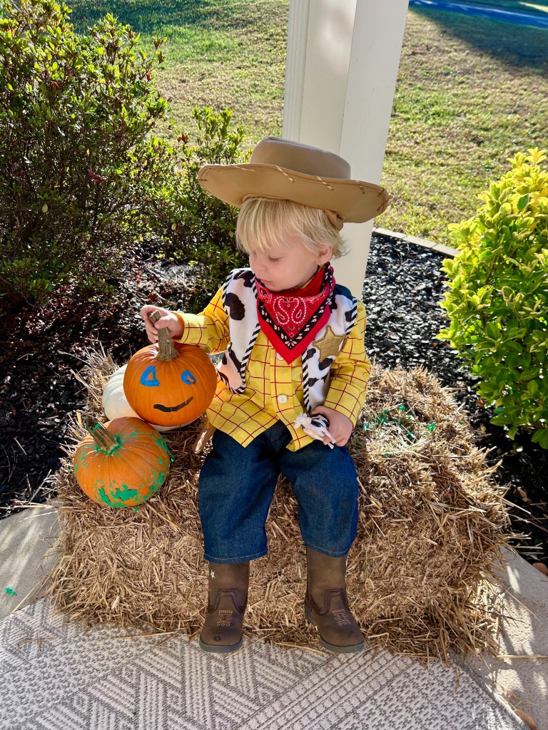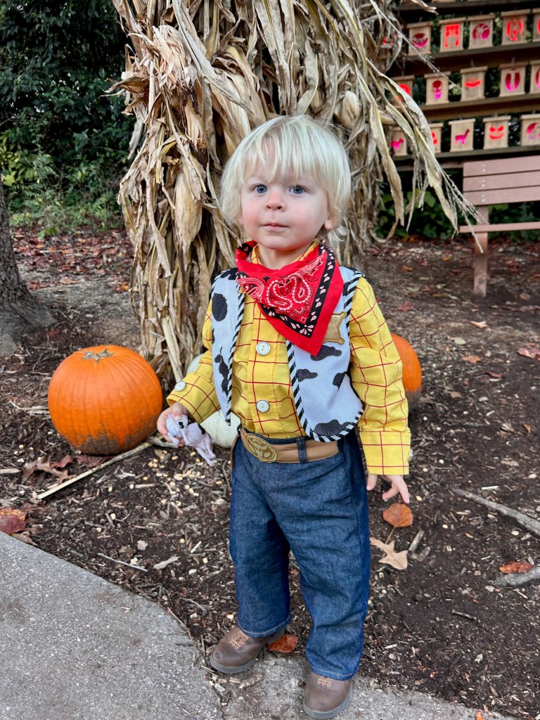 The cow obsession was very fitting for Capers’ costume this year. I love this little Woody costume so much!