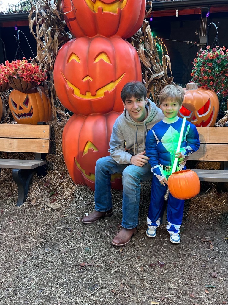 Capers stood a few feet back from the Jack o lantern this year, haha. He’s so funny! He’s our little cautious one!