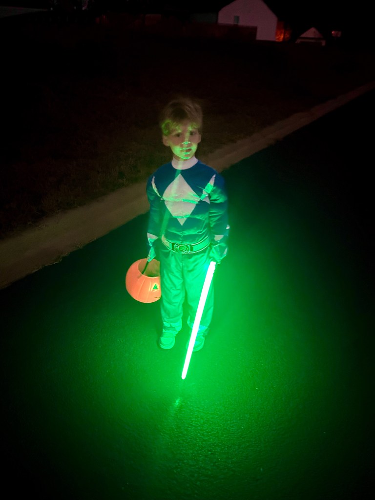 Brewer has been planning his costume since the day after Halloween last year! lol. He got this sword at a Spartanburgers game months ago and said “this is for my power ranger costume.”