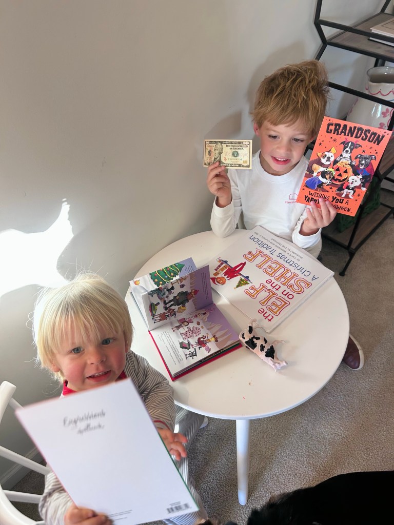 The boys boo buckets! It’s usually just a little something + almost always a pair of Christmas pajamas 😍