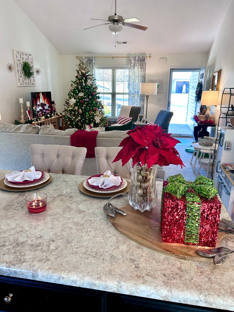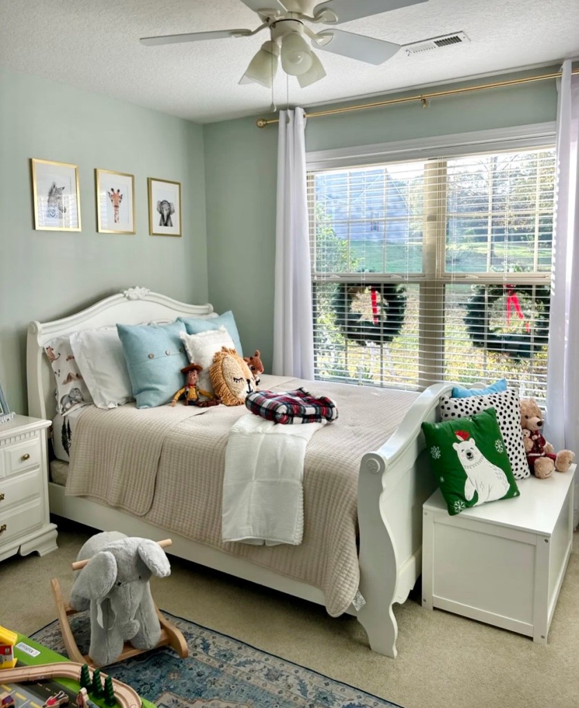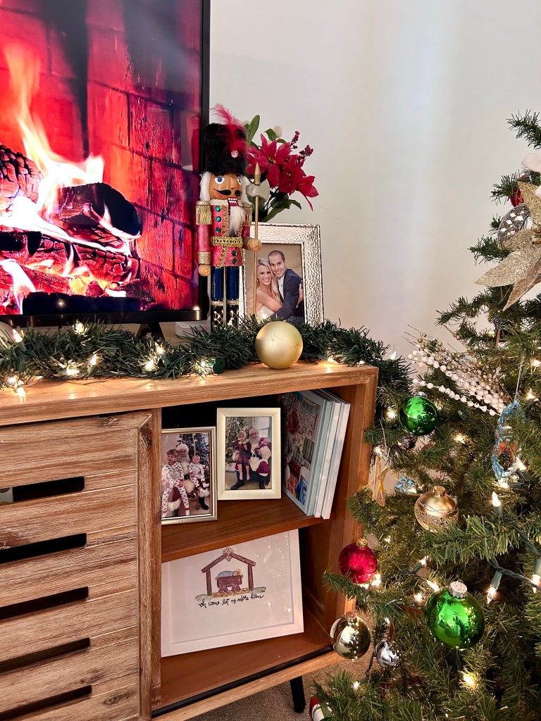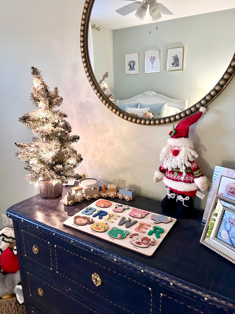 Story time: I’ve always used a big bow for a tree topper and this year after we decorated, Brewer said, “mommy, we need a star on the tree because that means Christmas.” He is so right! We swapped the bow with the star on a smaller tree in our room. Plus added some sparkly decor around it. It represents The Star of Bethlehem that guided everyone to Jesus- who brought joy, hope, love, and peace!
