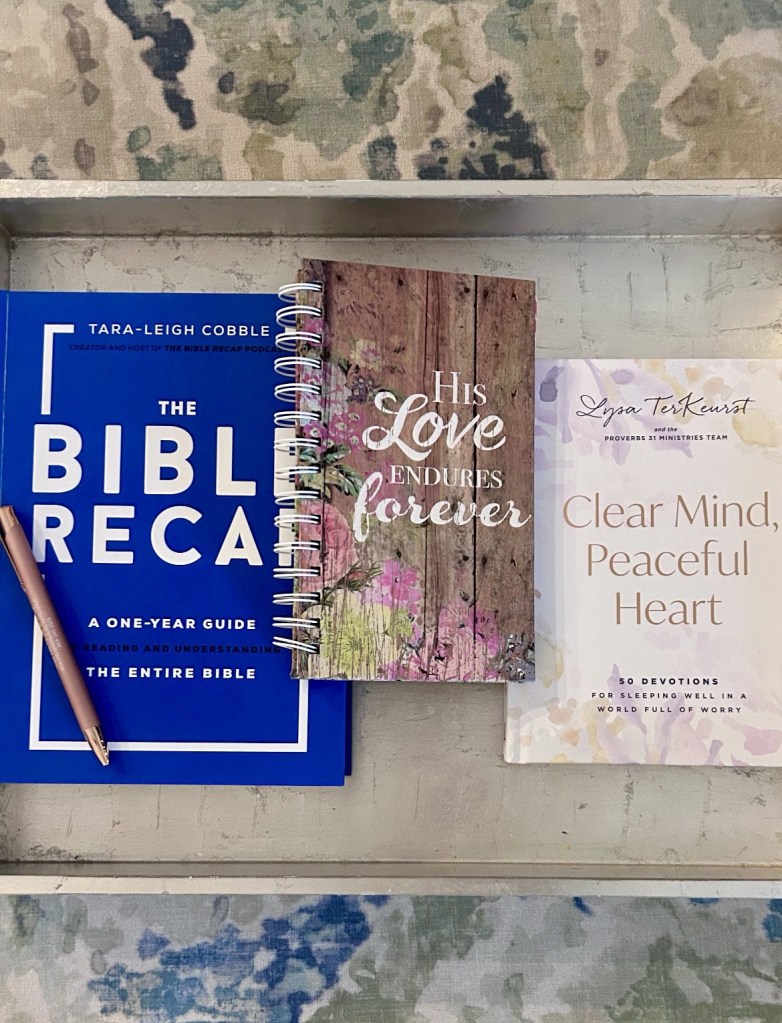 This year, I am walking through The Bible recap. I’ll have my daily prayer journal- just a place I jot down prayer requests. I’m also using the “Clear Mind, Peaceful Heart” devotional by Lysa TerKeurst- which only contains 50 devotions. I plan to incorporate this once at the beginning of each week!