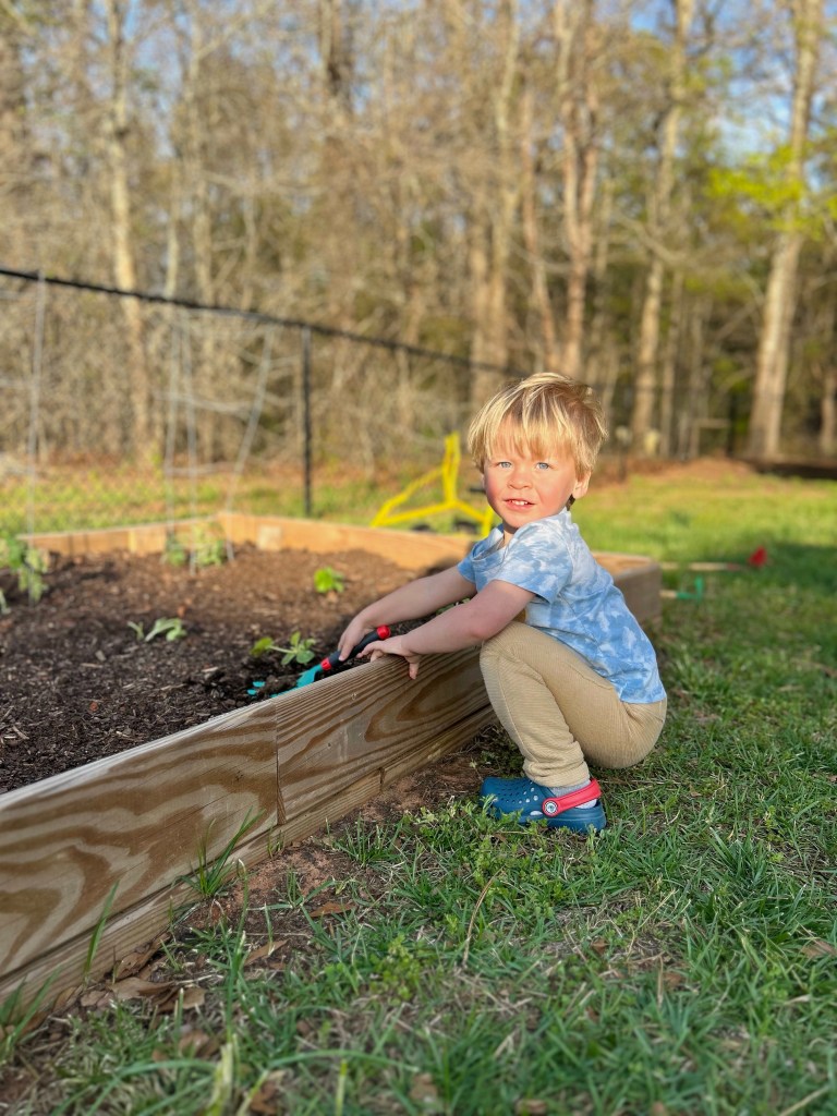 We’ve been busy doing spring projects around the yard and he’s been my little helper.